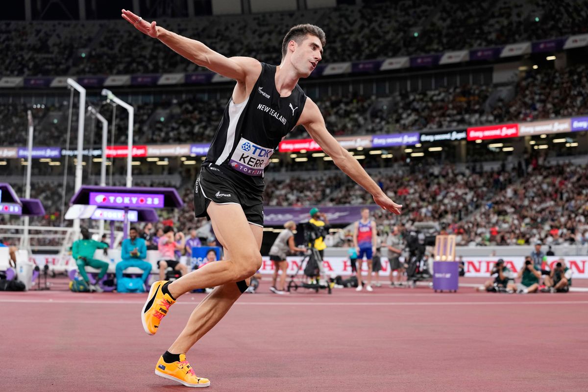 Olympic champion Hamish Kerr won the high jump to give New Zealand a gold medal for a second straight night. He followed Geordie Beamish, who captured the steeplechase crown for the country’s first title in a men’s track event at the worlds.