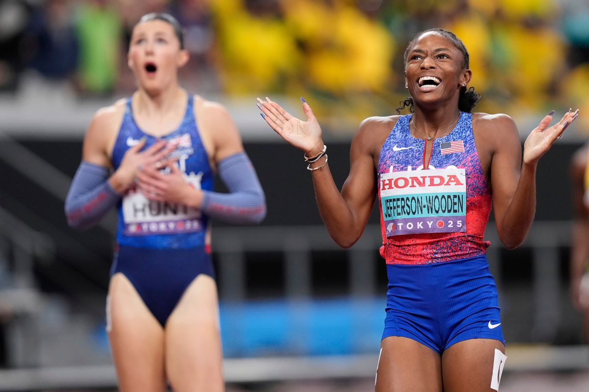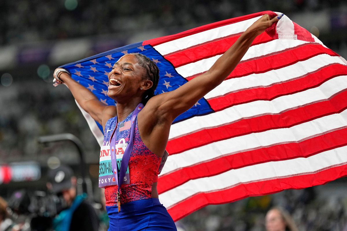 TOKYO (AP) — American sprinter Melissa Jefferson-Wooden has a gold medal from the world championships. Two of them, in fact.