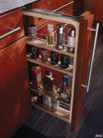 To get all you can out of your budget, squeeze as much as possible out of your space. Many cabinetry designs offer built-in storage and organization features — even in spaces just a few inches wide. A 3-Inch Base Filler Pullout, for example, is a vertical cabinet that features adjustable shelves with chrome rail sides and a full extension guide. This clever cabinet provides added storage in space you didn’t even know you had.