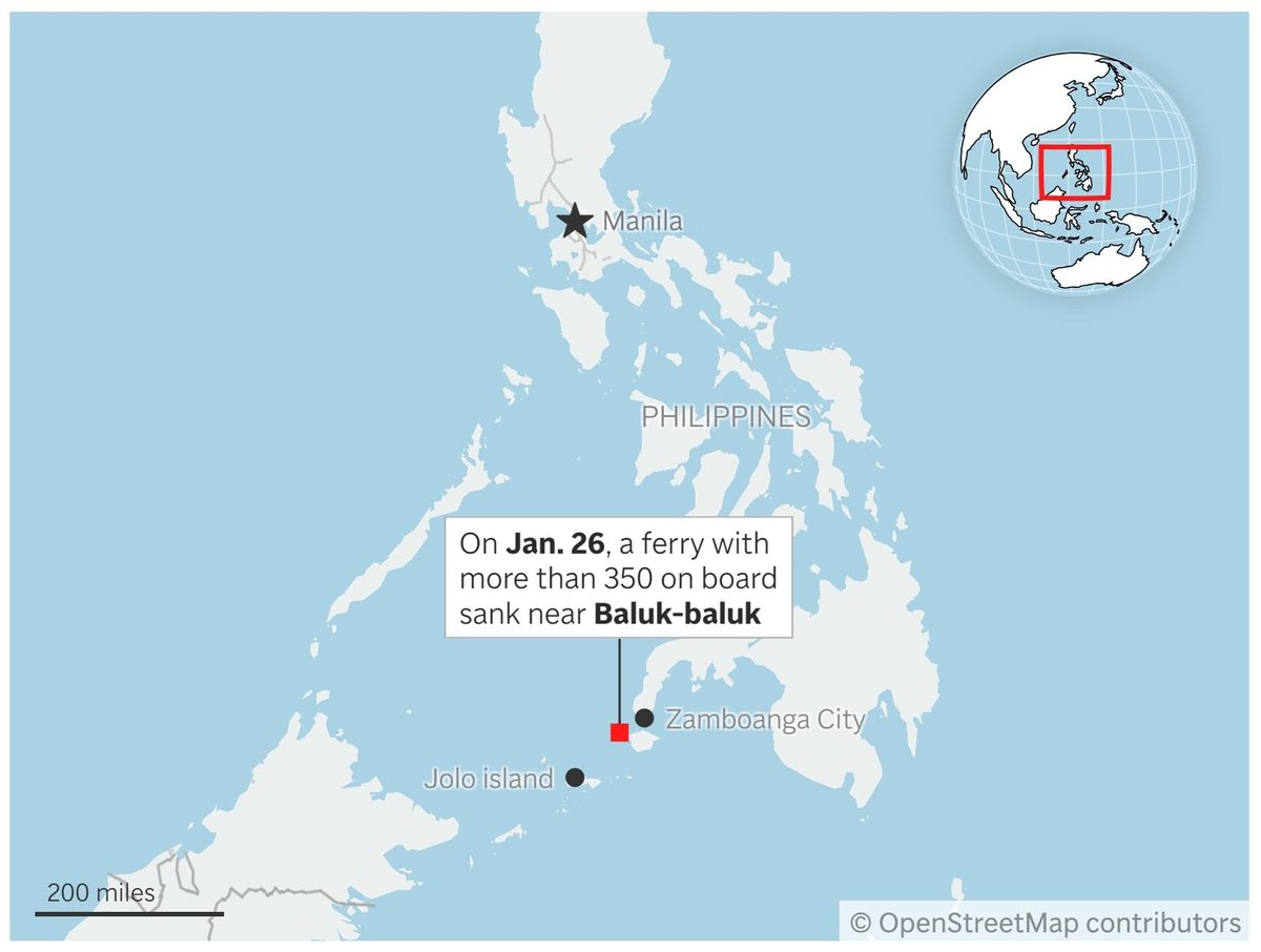 The steel-hulled cargo and passenger ferry, which had three decks, sank off the island village of Baluk-baluk in Basilan province while en route to Jolo island from the southern port city of Zamboanga with 317 passengers and 27 crew members on board.