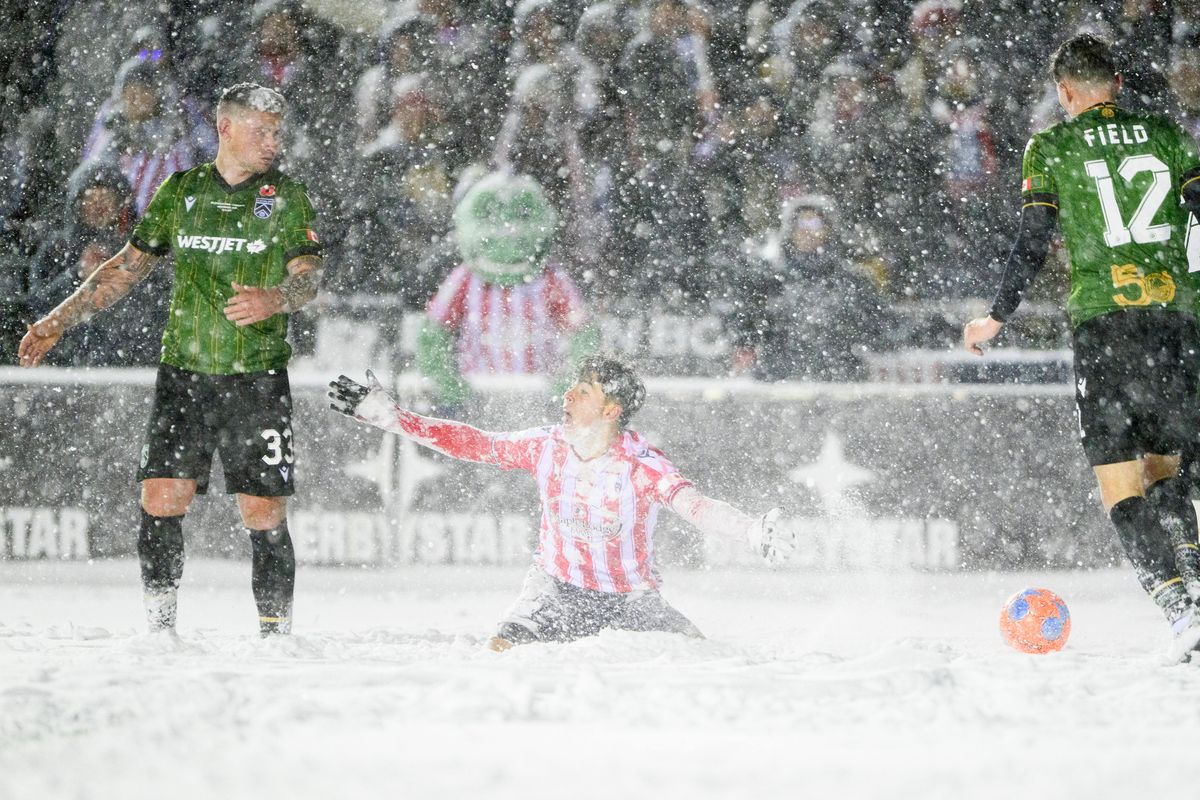 Just six minutes later, Ottawa midfielder Gabriel Antonaro lobbed a pass into the box that evaded the crowd through the snow and found Rodriguez for a bicycle kick.