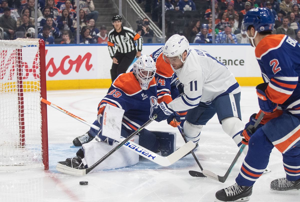 Anthony Stolarz stopped 34 of the 36 shots he faced for the Maple Leafs, including a diving stop on Leon Draisaitl that prevent the Edmonton from getting back into the game in the final minutes of the third period.