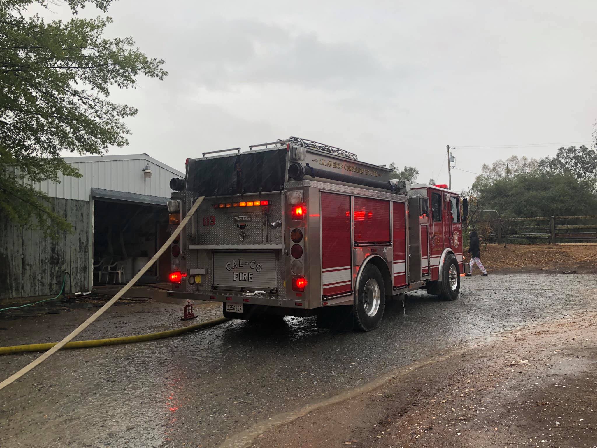 On Sunday (Oct. 24), fire crews responded to a report of a barn on fire with animals trapped inside on Covey Lane. Once on scene, they discovered the flames were burning along the outside wall of the barn. Calaveras Consolidated Fire Department (CCFD) officials detailed that firefighters were able to get hose lines inside the barn and a line on the outside fire bringing it under control and preventing it from destroying the structure.