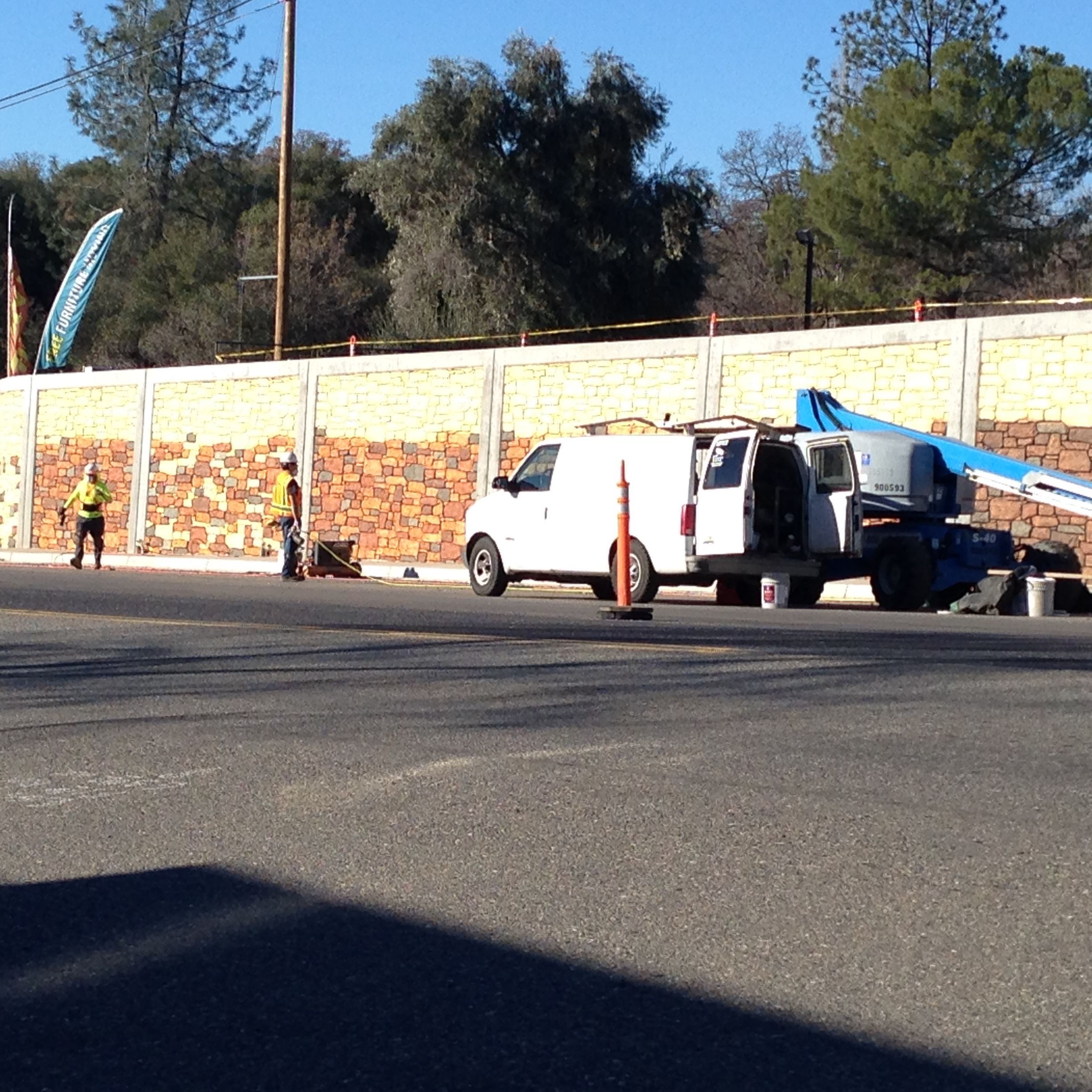 The painting of the rock retaining wall will be completed this weekend according to Sonora City Engineer Jerry Fuccillo. On Monday, crews will start working on putting up erosion control blankets along the slopes above the wall, do dike work and some hydro grass seed planting.