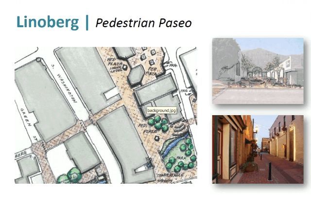 These include the conceptual plan for the Stockton Street-West Gateway Corridor project (graphics: stockton gateway project), the closure of Linoberg Street between Stewart and Green streets to create a pedestrian walkway/sitting area, and the architectural design of public restrooms on Stewart Street, along with allowing for bids for the latter project. City Community Development Director Rachelle Kellogg says there is no funding yet for the Stockton and Linoberg Streets projects, but city council approval would continue to move both forward to eventually solicit money.