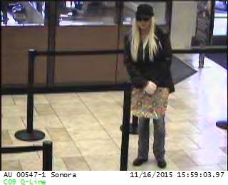 As reported on Monday, a female went into the bank and gave a note to a bank teller and left with undisclosed amount of money. Police described the suspect as a white female in her mid to late 30’s, long blonde hair, with a black baseball cap, wearing large oversize glasses, and carrying a large flower patterned handbag.