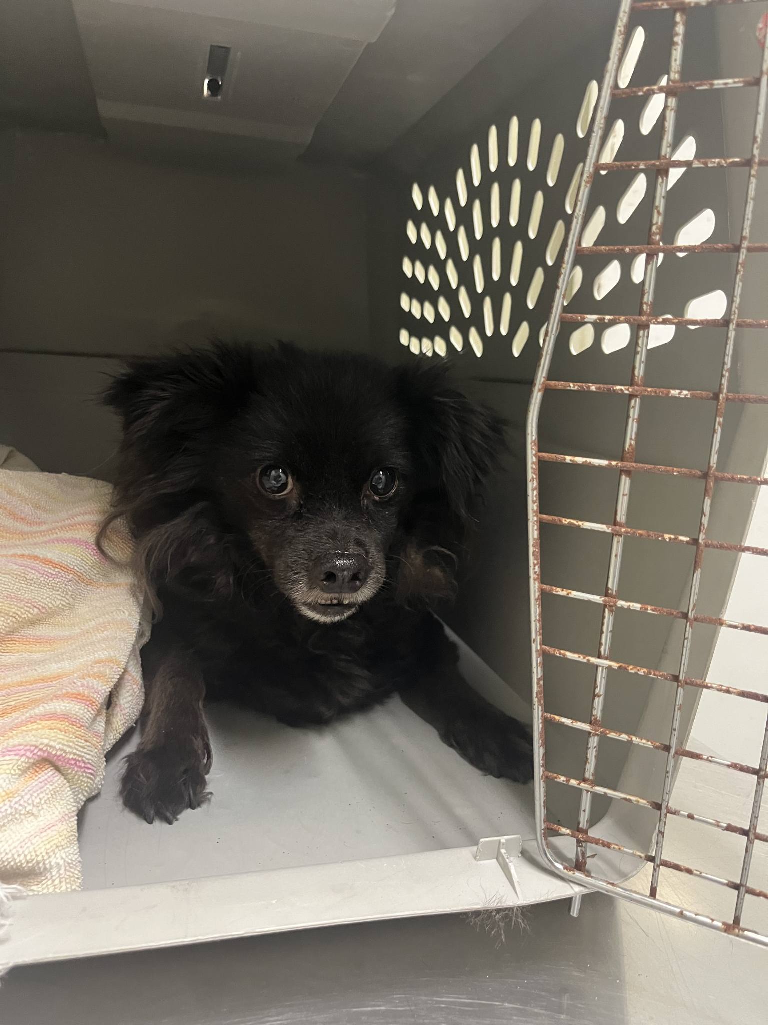 He arrived at the Tuolumne County Animal Control shelter on Wednesday after reportedly being hit by a car near the intersection of Chicken Ranch Road and the highway in Jamestown. Animal Control officials say he had no collar on and appears to be a senior dog. He is a black terrier mix with a longer, fluffy coat, an underbite, and graying near the muzzle. His nails are a bit long, according to shelter officials, signaling he is most likely an indoor dog.