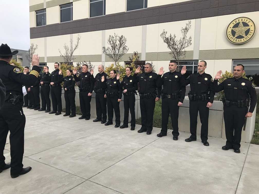 San Andreas, CA – A long line of uniformed men and women stood at attention as Calaveras County Sheriff Rick DiBasilio saluted the new hires and those being promoted within his office.