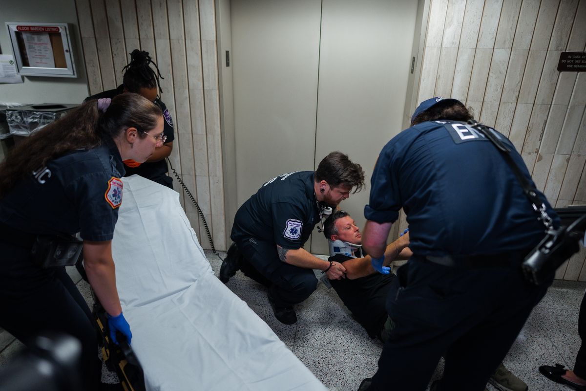 A bystander held Elibol’s head and a nurse treated him until an ambulance arrived, witnesses said. Video showed him in a neck brace as paramedics wheeled him out of the building on a stretcher. The other journalists, amNewYork police bureau chief Dean Moses and Olga Fedorova, a freelance photographer whose clients include The Associated Press, were not seriously injured.