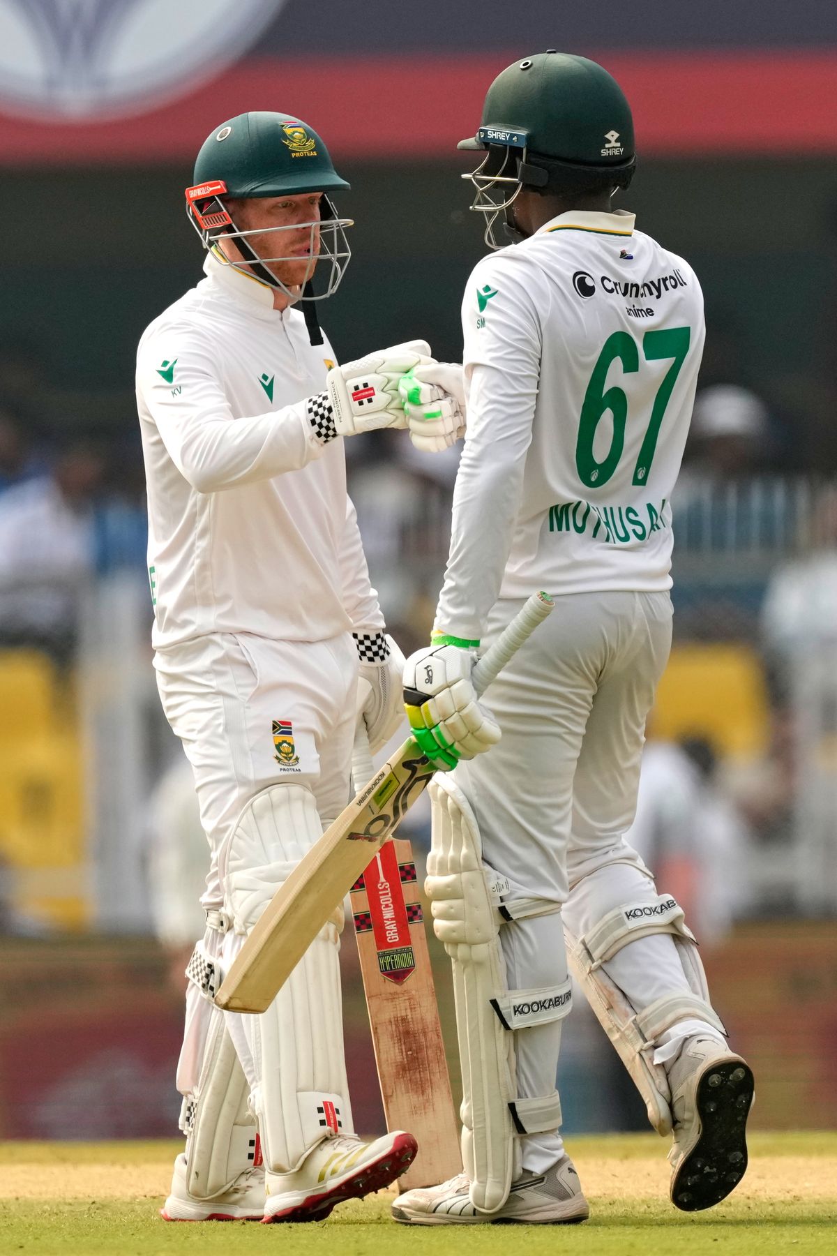 GUWAHATI, India (AP) — An unbroken 70-run partnership for the seventh wicket between Senuran Muthusamy and Kyle Verreynne helped South Africa reach 316-6 at tea on Day 2 of the second cricket test against India.