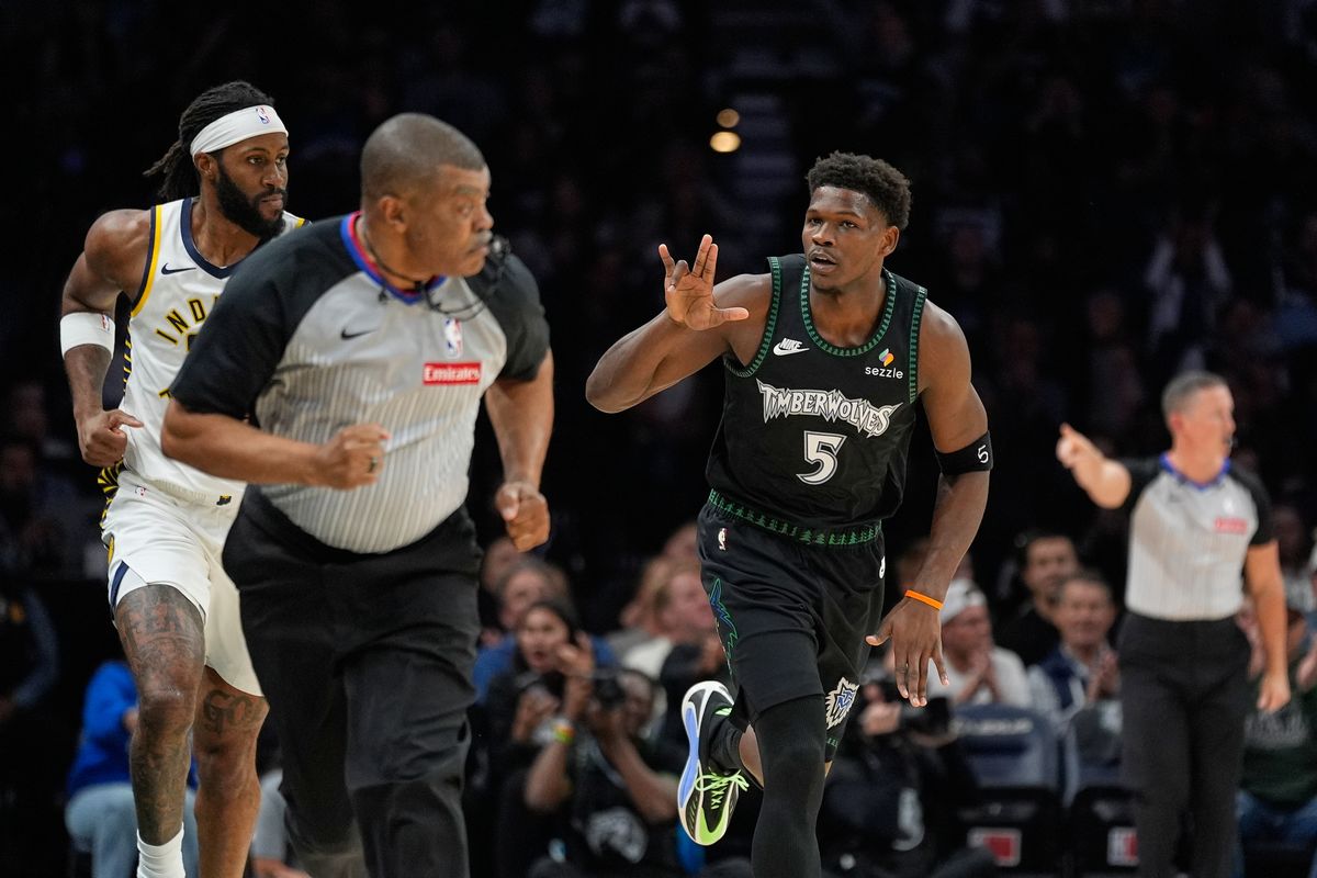 The home opener hype in Minnesota, with the rollout of stage-style lighting on the court and the return of the all-black uniforms with pine-tree trim worn during the Kevin Garnett era, abated when Edwards went missing 3:08 into the game.