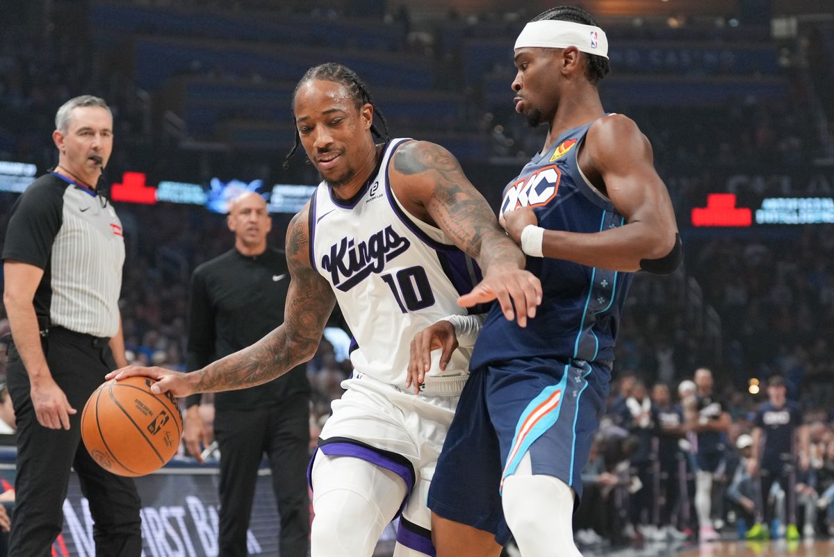 Sacramento’s Zach LaVine made a shot from beyond halfcourt as the first half expired, but it was ruled that he shot it after the buzzer, and the Thunder maintained a 58-50 lead at the break.