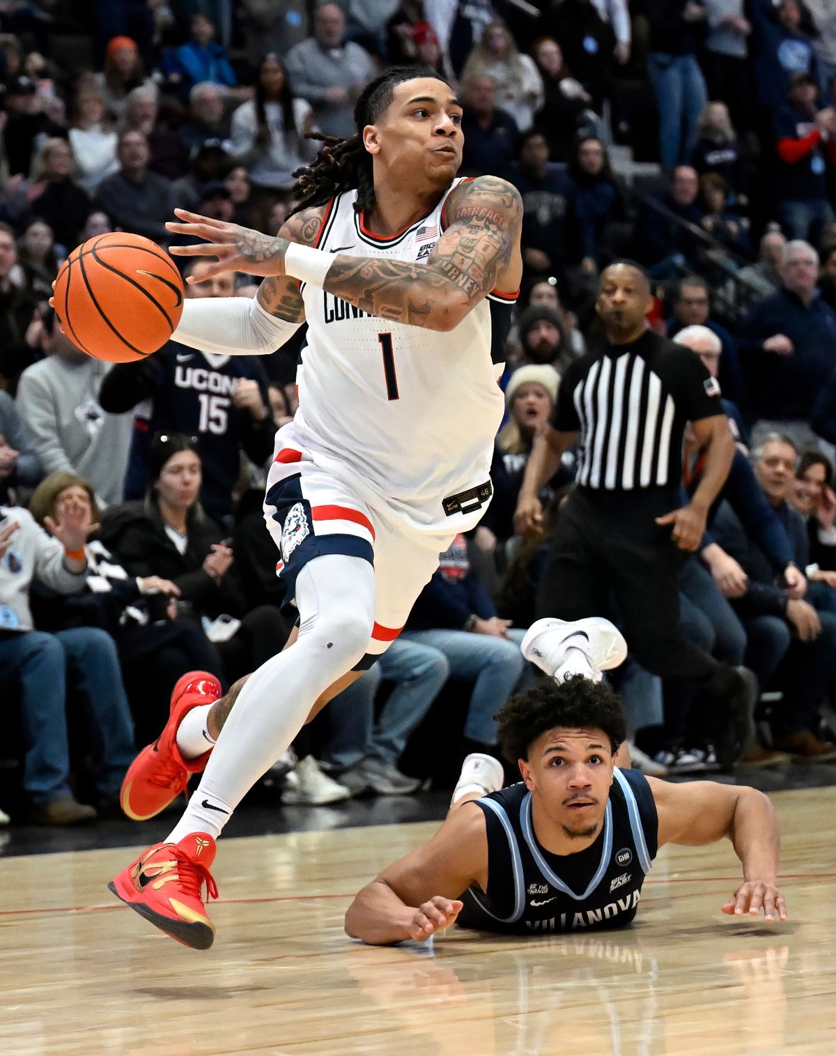 UConn coach Dan Hurley was called for a technical foul with 15:06 left in the second half after no foul was called on a shot in the paint by Karaban and then Villanova’s Acaden Lewis went to the line after being fouled. Devin Askew made both free throws on the technical and Lewis hit both foul shots to put Villanova up 39-33. Ball had five points in a 7-0 UConn run and his 3-pointer with 12:12 remaining gave the Huskies their first lead of the second half.