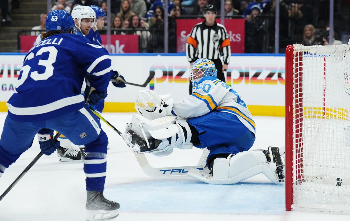 The Leafs were playing without seven regulars, including forwards Auston Matthews, Scott Laughton and Nicolas Roy. Brandon Carlo has joined fellow defenseman Chris Tanev on the sidelines, while goaltender Anthony Stolarz also remained out. Matthew Knies was scratched about an hour before puck drop with a lower-body injury.