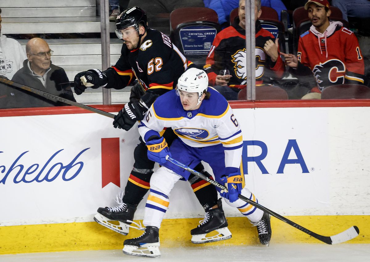 Thompson trimmed Buffalo’s deficit to 2-1 at 4:24 of the second. But that momentum was short-lived as consecutive penalties to Beck Malenstyn and Jordan Greenway resulted in a brief two-man advantage, leading to Huberdeau’s power-play goal at 7:05 that restored Calgary’s two-goal cushion.