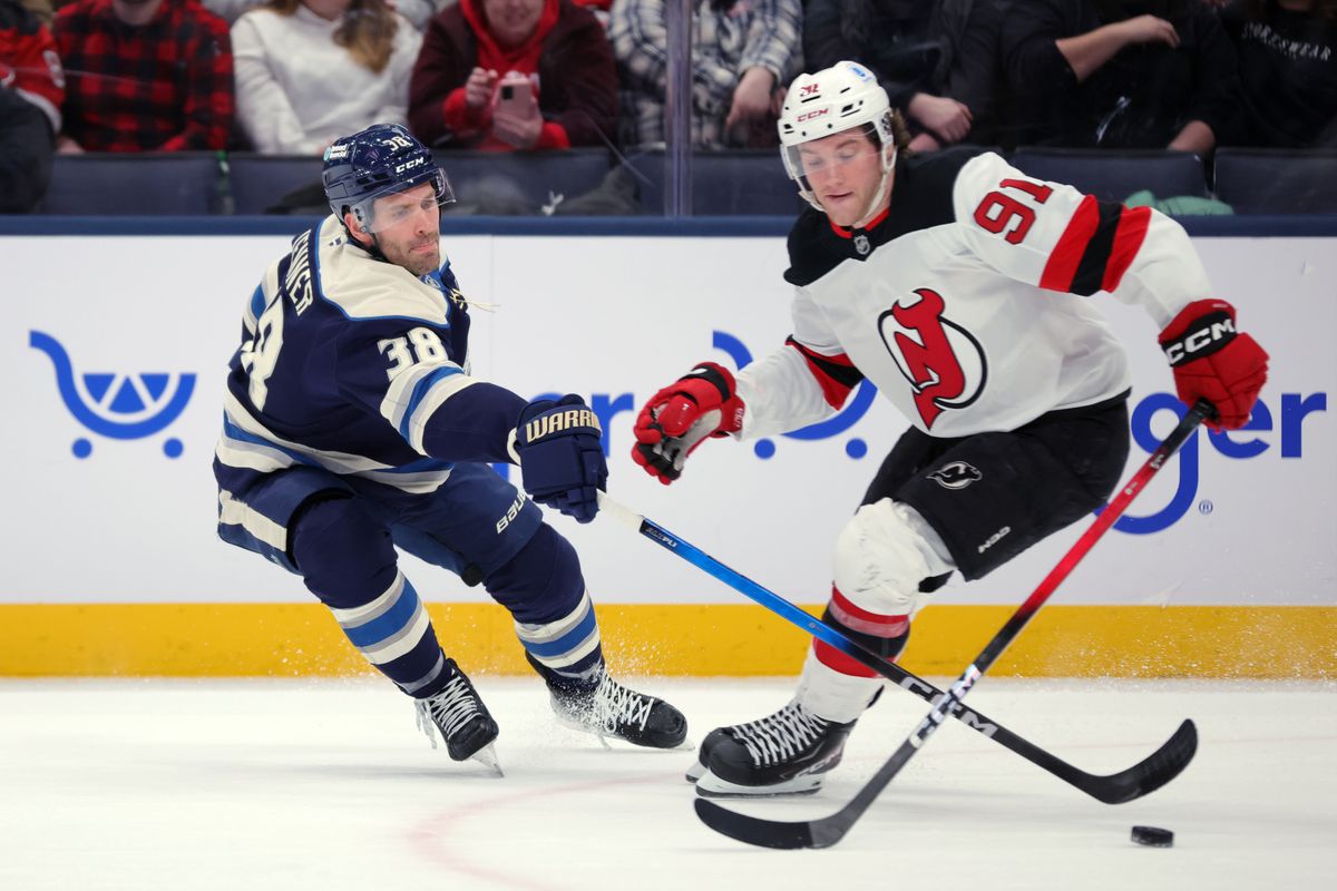Four seconds after Columbus’ Marchenko was sent off for hooking, Hischier tipped in Luke Hughes’ shot from the point 2:49 into the third as Greaves was being screened.