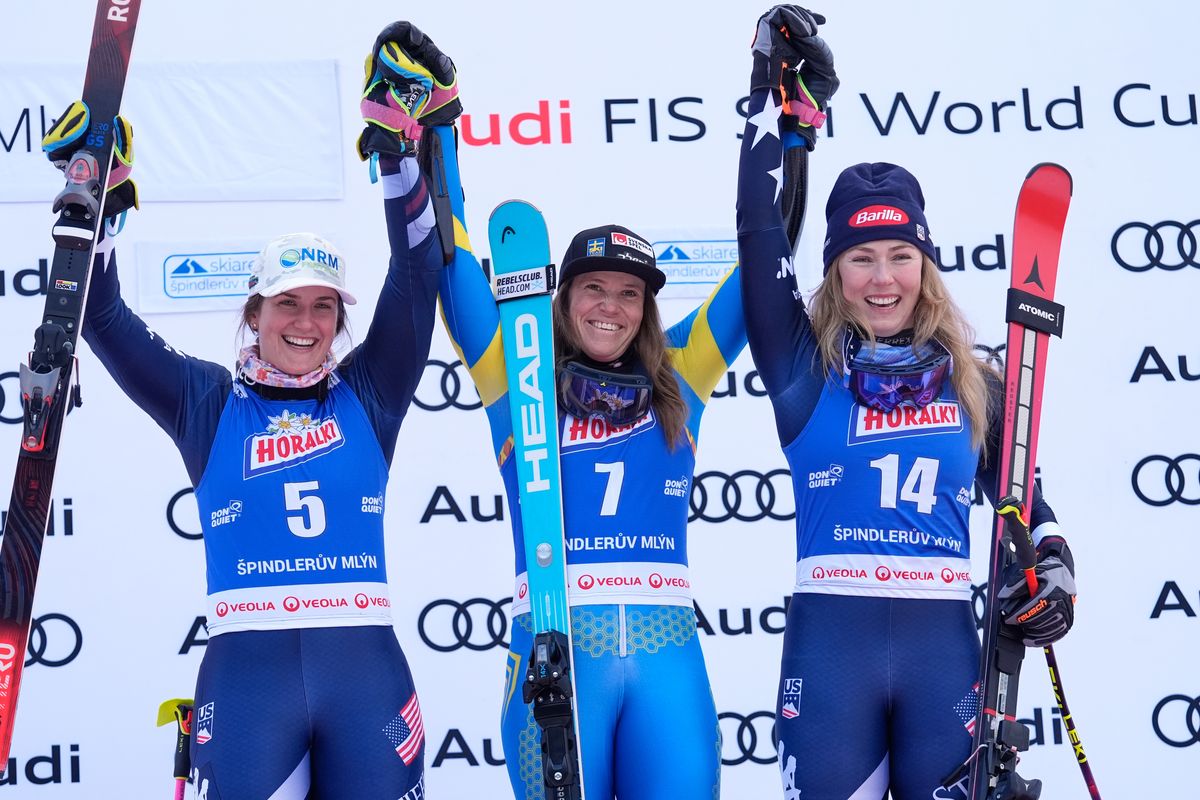 SPINDLERUV MLYN, Czech Republic (AP) — Mikaela Shiffrin is back on a World Cup giant slalom podium after two years.