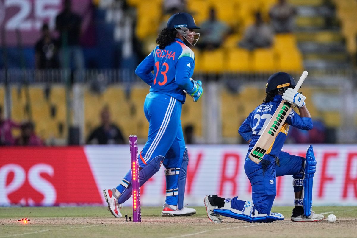 Deol was first out caught and Jemimah Rodrigues fell for a golden duck — out bowled. Kaur was the next to go three balls later and then Richa Ghosh fell to Athapaththu for two runs in a disastrous turn for India.